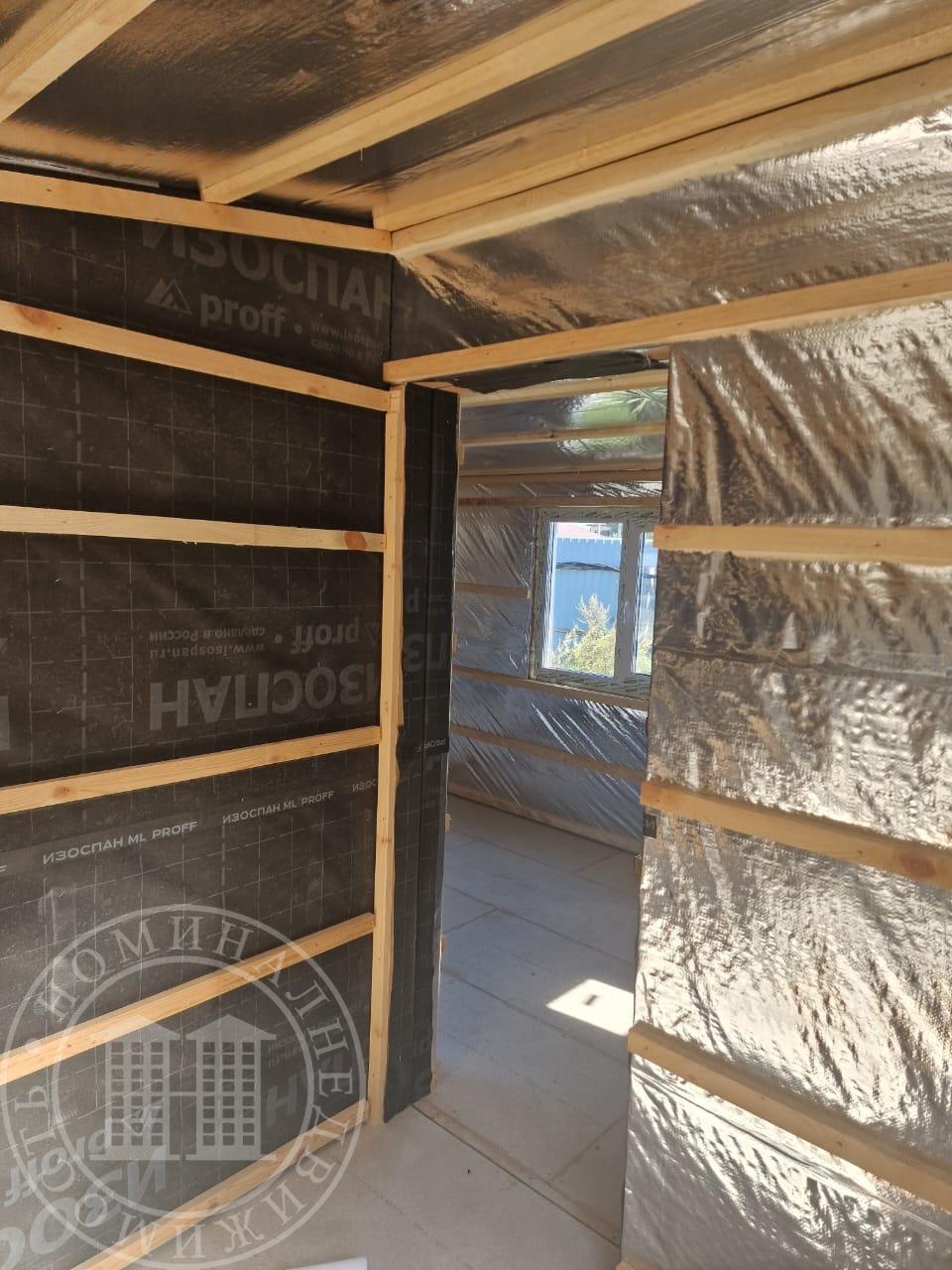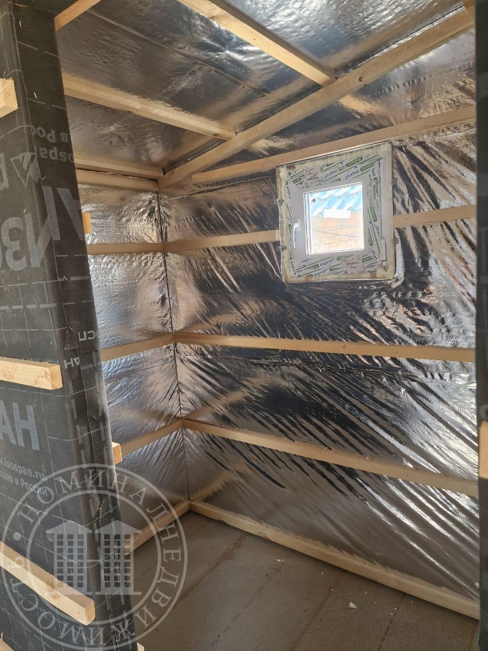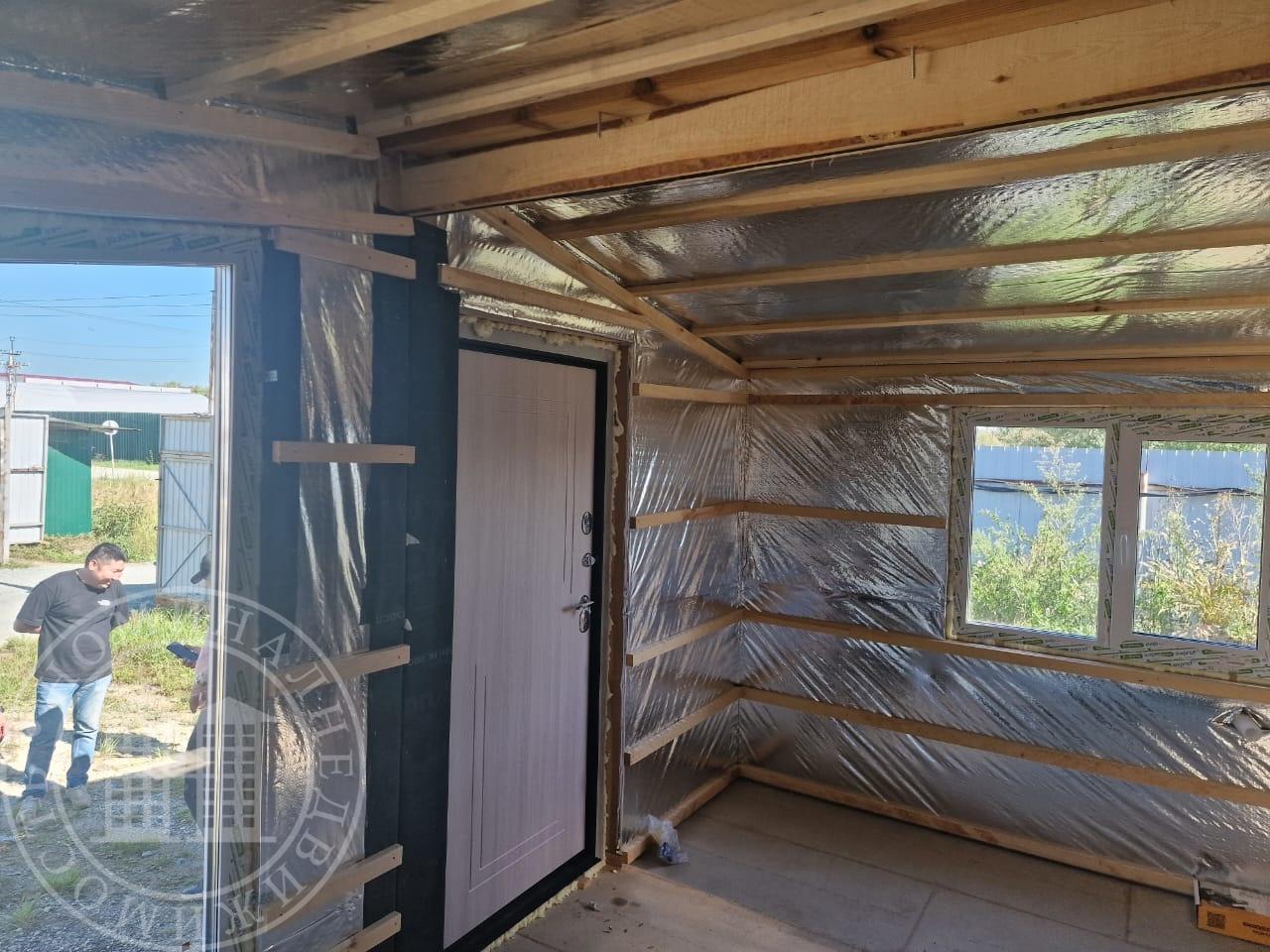 Размер наружного контура 5 на 5. Утепленный пол 20 см, стены и потолок 15 см. Установлена входная металлическая дверь с терморазрывом, Окна пластик 5-ти камерные.
